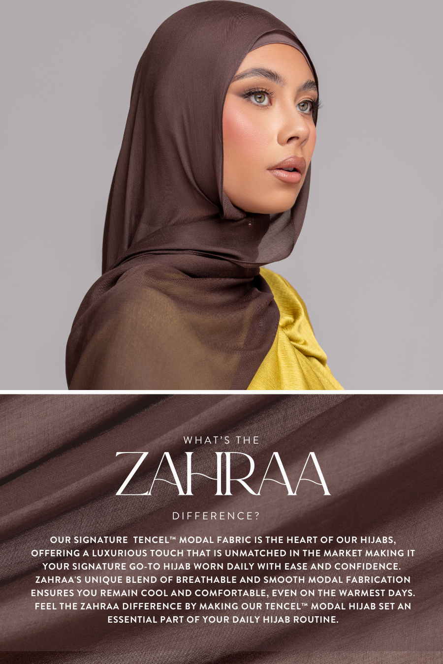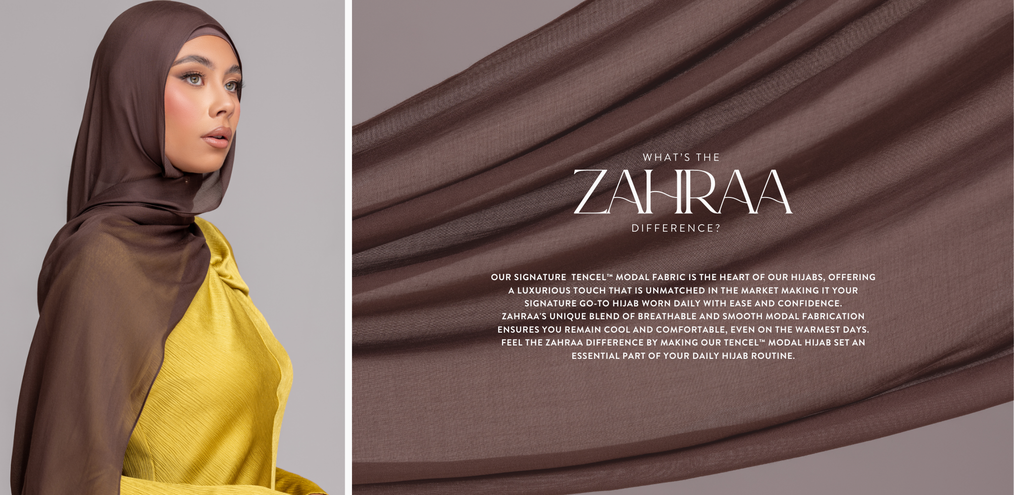 The Zahraa Difference: Stand out in Zahraa’s hijabs and feel the luxurious difference. Compared to cheap modal fabrics in the market, our unique blend of fabrics sets our Modal hijabs apart from the rest.